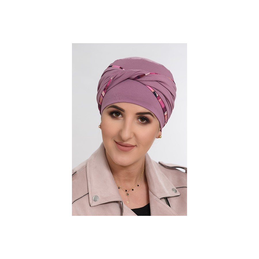 A turbánt könnyű felvenni, kellemes, és kényelmes viselet, gyönyörű formát, és profilt kölcsönöz a fejnek – a gazdag fodroknak köszönhetően. Természetes anyagokból készült. A rugalmasságot 5 % elasztikus anyag biztosítja. A sál kreatív megkötésével sokféleképpen, változatosan hordható.