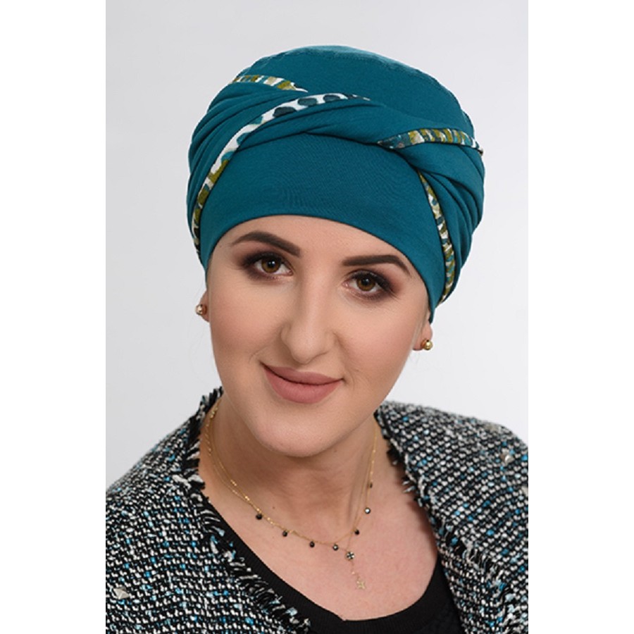 A turbánt könnyű felvenni, kellemes, és kényelmes viselet, gyönyörű formát, és profilt kölcsönöz a fejnek – a gazdag fodroknak köszönhetően. Természetes anyagokból készült. A rugalmasságot 5 % elasztikus anyag biztosítja. A sál kreatív megkötésével sokféleképpen, változatosan hordható.